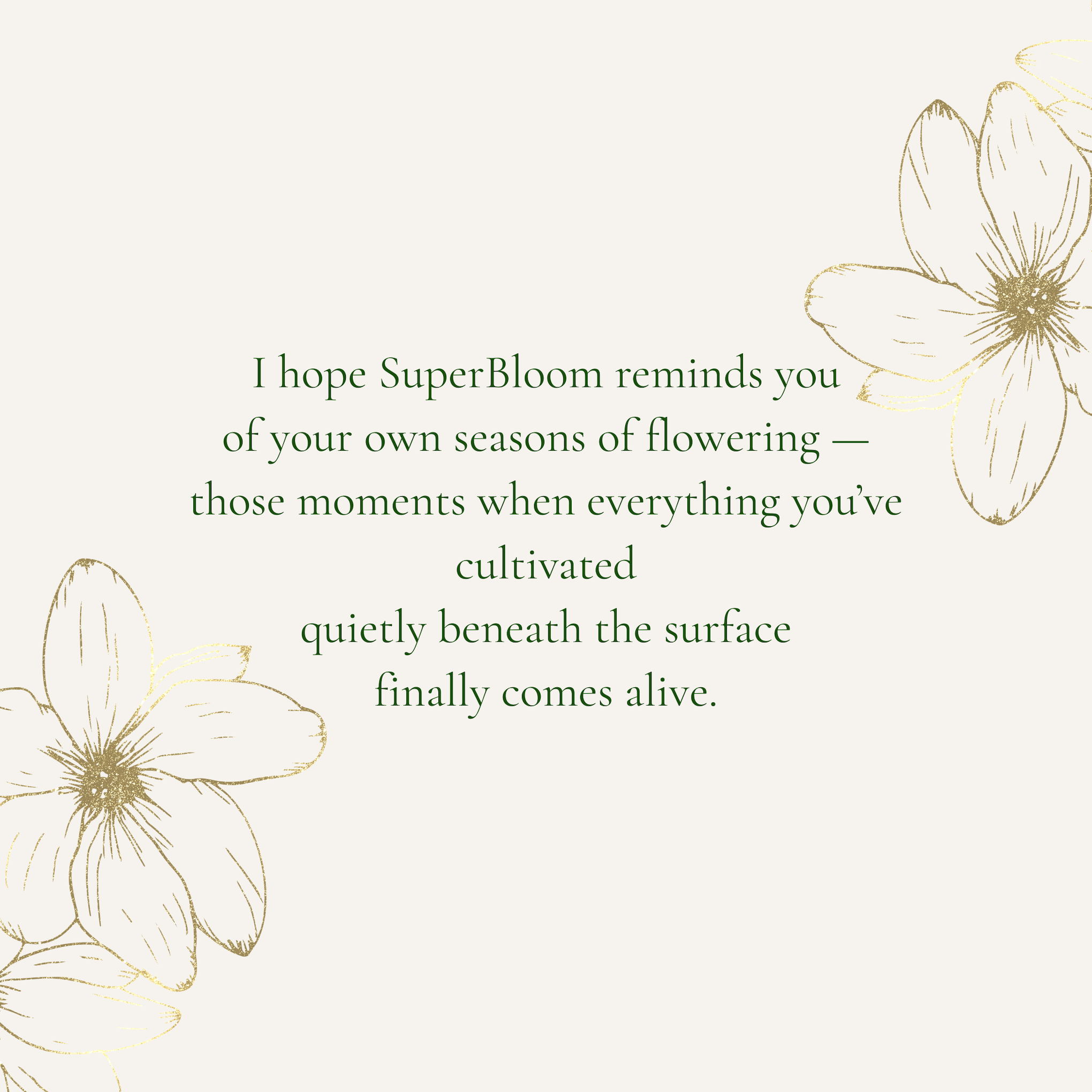 In the deserts of California, we have a phenomenon called a superbloom, where, after a few years of dryness and little growth, the conditions align that allow seeds that have lain dormant to germinate and blossom in an explosion of color and life.